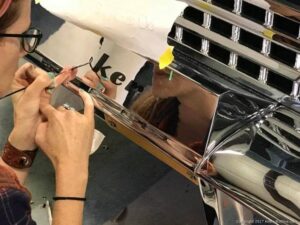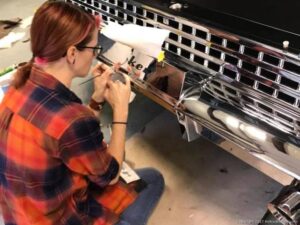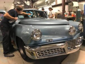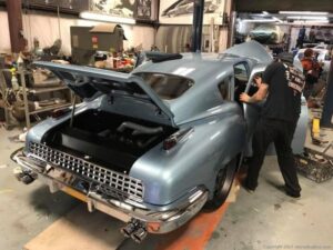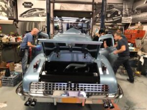 This is one of Rob’s fiberglass recreations that was put aside for years and came out of hiding. The color of the car was picked from a dress that Mrs. Tucker wore at a event, and what an outstanding choice. Great job from Rob and the boys from NJ; good luck on your trip to SEMA!