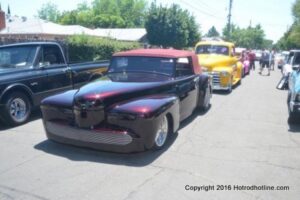 The Italian Hot Rod Association hosted our 52nd Street car show on June 5th 2016 at Sacramento C.a …Little Italy Area of town …A Benefit to support the Sac. P. D K9 Assoc. . Lunch came with your entry fee … We had 90 Hot Rods & Customs it was a cool car show & laid back day with a raffle ( plus 35 Salami”s given away in the raffle ) ..And a auction of a cool MIKE Clines Art Work Panel ….