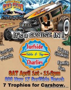Great afternoon at Surfside Charlie’s cruise in with Cecil Chandler and the Myrtle Beach Car Club .. good food and friends on a cool Saturday