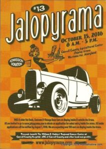 It’s get better each year …. JALOPYRAMA #13 with 140 traditional cars & trucks filled the Carrol County AG Center in Westminster, MD for a One Day Event !!!. Some of the finest vehicles on the East coast and even a participant from Ohio.. Not counting over 350 Pre-1963 filling the parking lots and around the center. NEW THIS YEAR will be the Rusty Nuts Hot Rod Group GRAND BOMB AWARD. This award will be decided by members of the Rusty Nuts H.R.G. members. The winner of this award will have his/her name permanently painted on the GRAND BOMB AWARD which will be shown on the stage where all of our auction items will be displayed.
