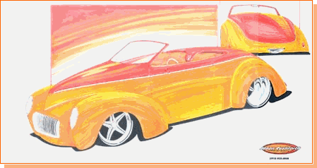 Earlier this year we got a tip on a fine young rodder who is also an artist in the rodding industry…so we decided to track him down. Jason Rushforth is a 29 year old from Washington State. He has been drawing for his entire life and doing it for a living for about 8 years. He has done work for Sport Truck Magazine, IDA Automotive, Primedia, Boyd Coddington and many more legends in the automotive industry.