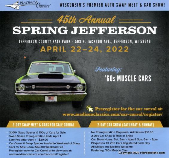 Jefferson Spring Swap Meet & Car Show Published April 23, 2022By Richie JaeschkeCategorized as Car Shows Post navigation Previous postDowntown Deland Car ShowNext postDave's Modular '64 Fairlane Classifieds Car Show Coverage Guest Columnists Build Articles Vendor Directory Stolen Cars Muscle Cars Car Features Event Listings VIP Sponsors Sponsors