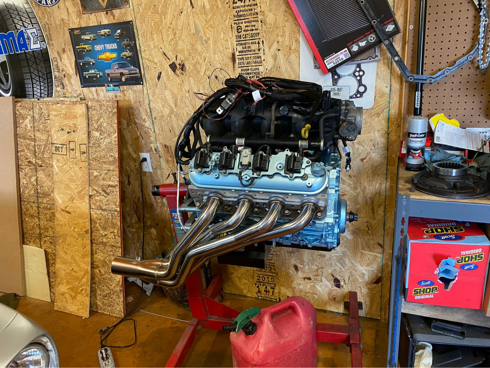 Eventually, the time came to swap out the Poncho 350 for a LS swap. He scrimped and worked longer shifts to set aside some dough, and after a few years he had it. In went a rebuilt 5.3-liter LS from a 2002 Suburban. The motor had already been bored .030 over. Then came a Summit Pro LS Stage 4 cam, Jegs hardened push rods and 1.7 aluminum rockers. He brought this new package together with a Holley Terminator X Max ECU.