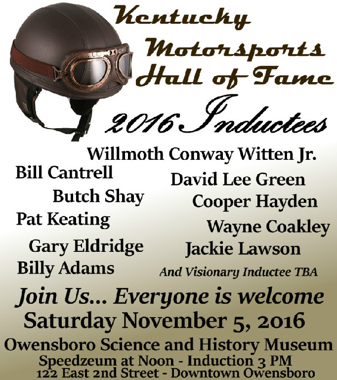 The Kentucky Motorsports Hall of Fame will once again recognize the history and contributions of some 11 individuals who have impacted the motorsports world with the induction of its 2016 class of honorees.