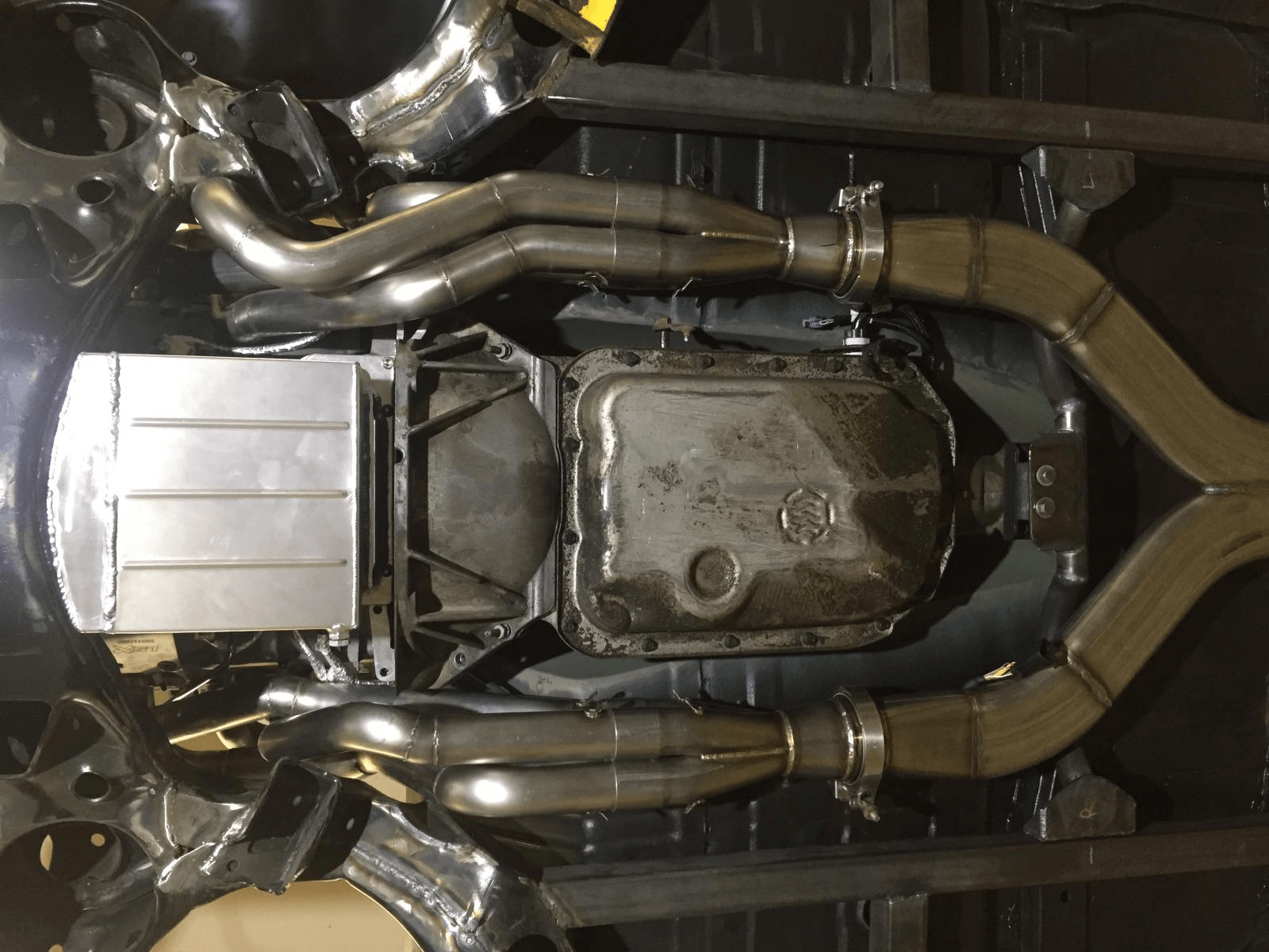 Mainly for reasons of frugality, he decided not to buy a mini-tub kit, but instead make his own. They weren’t as pretty as some, but they freed up enough space for him to fit a set of 20” wheels he had his eye on. Large wheels and tires would necessary—he was aiming at building a motor that would make 1,000 horsepower comfortably.