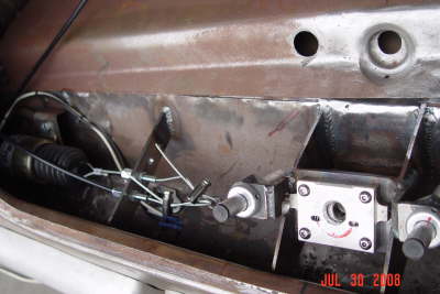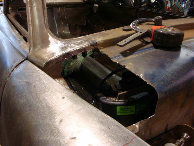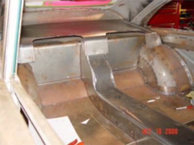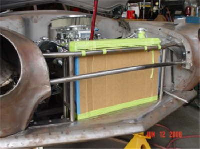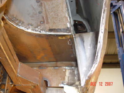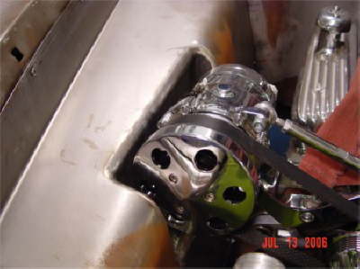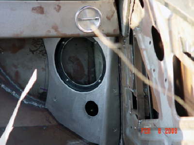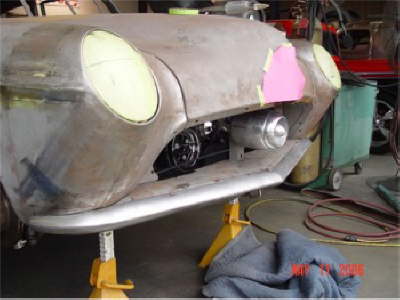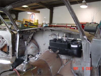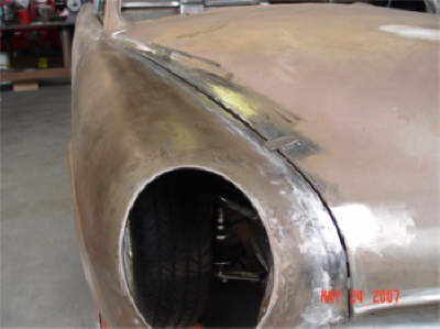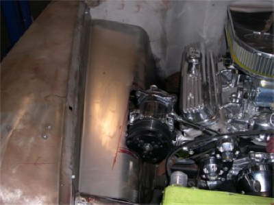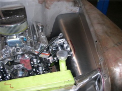 | Here are two shots of inner fenders being made to accommodate the AC compressor and the alternator. All Body modifications are getting close to being completed. |
