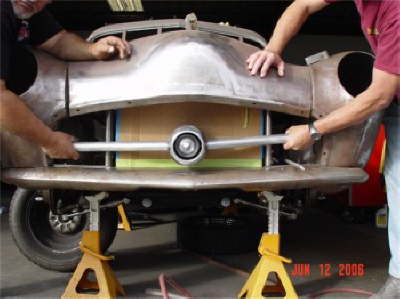 Here are a few shots of the rear bumpers being made from aluminum then will be chrome plated. |