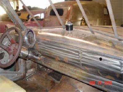 ’These three pictures are of the latest work being done on Larry Hendersons 51 Henry J which is the dash from a 50 chev going in |