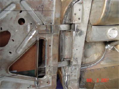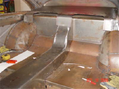 | Here are two shots of inner fenders being made to accommodate the AC compressor and the alternator. |
