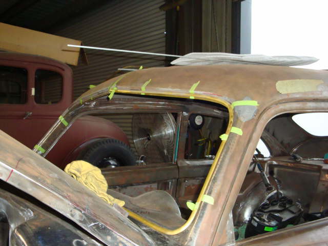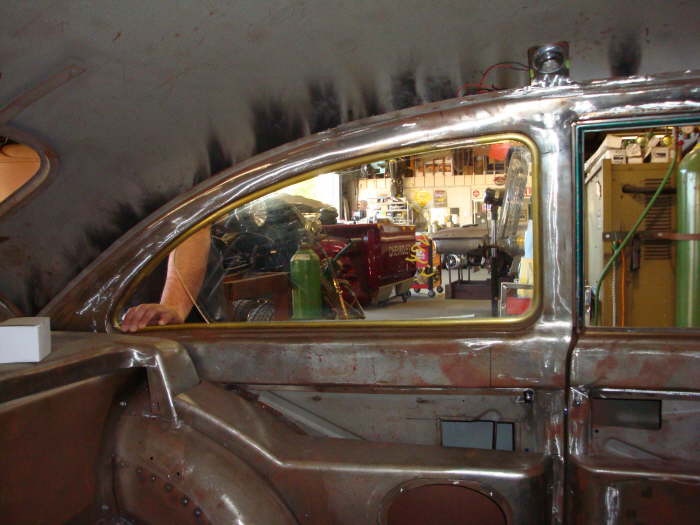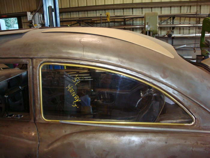 All windows in the car will have the chromed brass trim like the windshield Just couldn’t handle the look of the big fat rubber weatherstrip around all of the glass so it is gone. This look will be much cleaner. |