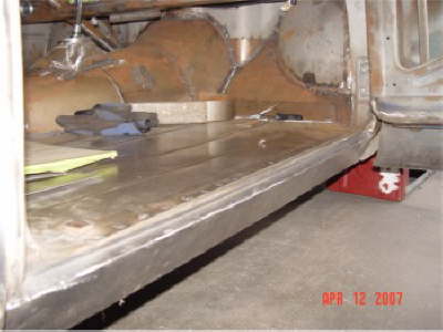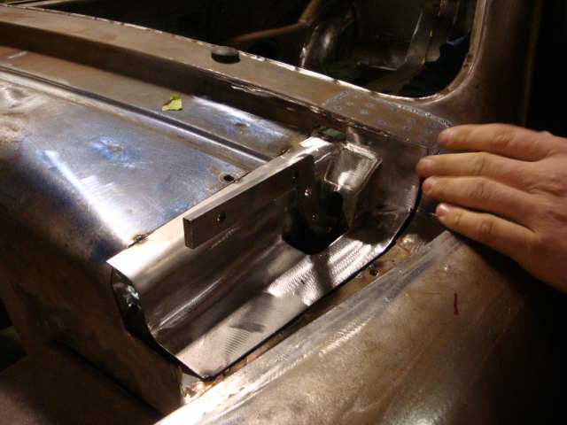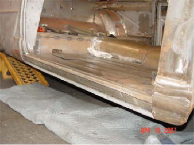The rocker panels are being set in to allow for the door bottoms to be lengthened down to the bottom of the rocker panels to eliminate the horizontal line that would normally be at the bottom of each door. |