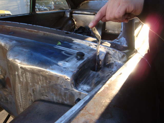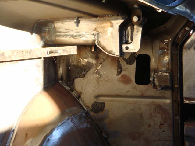 | Here are 4 pics of some of the clean up work going on under the rear area of the car at the wheel wells and rear roll pan. |
