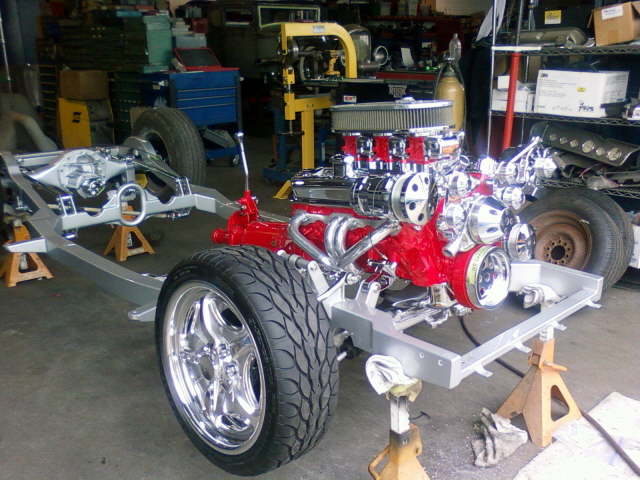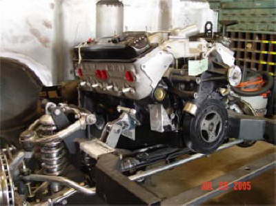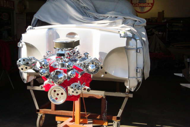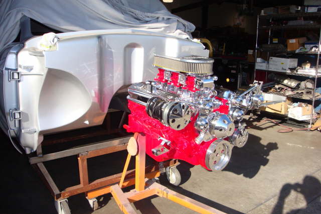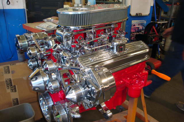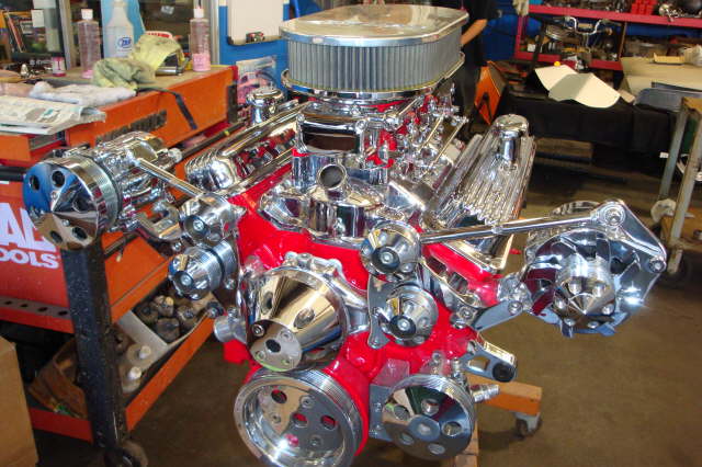 | Update Aug. 2010 – The engine is almost ready to install into the frame. Waiting for the oil pan and some misc. parts for the trans. to come back from chrome plating. |