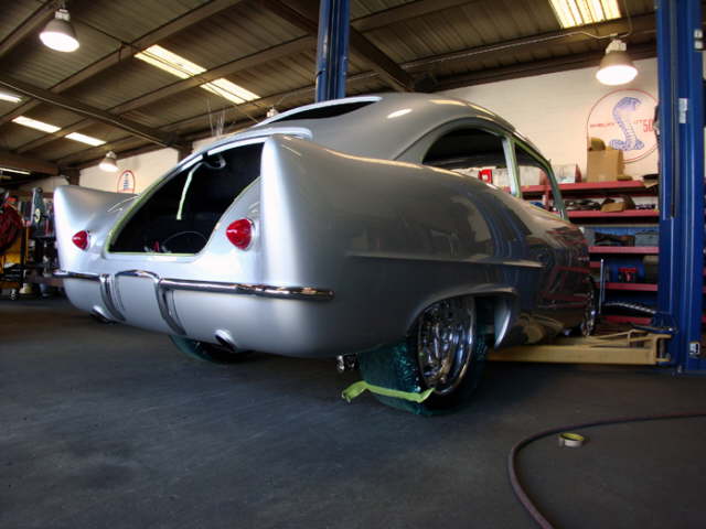 | Update: Sept. 15, 2009- Here are the latest pics of the work being done on the car at Charley Huttons Color Studio, mostly of the underside of the car. Final painting will begin first week in October. Getting closer to completion |