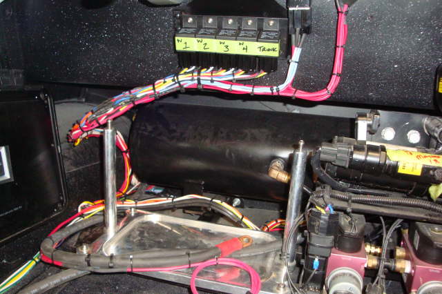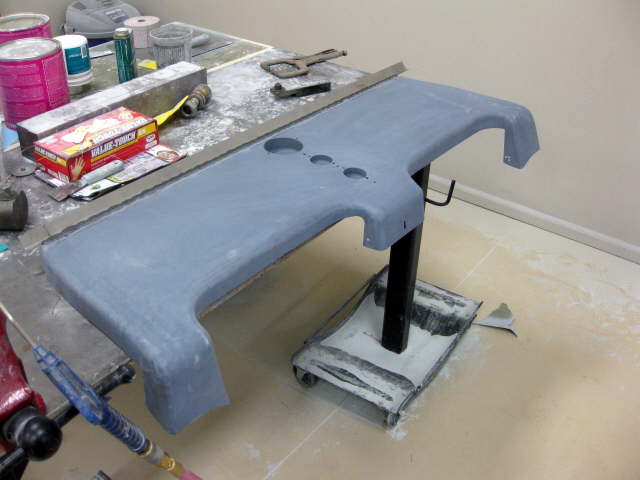 | Latest 4 pics. Dash completed and installed. Air ride suspension going in. Tail light work almost complete, left light area re-shaped and right light area not done yet. |