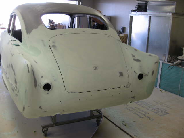 | Update: June 26, 2009-Pictures of latest work being done at Charley Huttons. Rear package tray area, rear roll pan area, and spot prime body. |