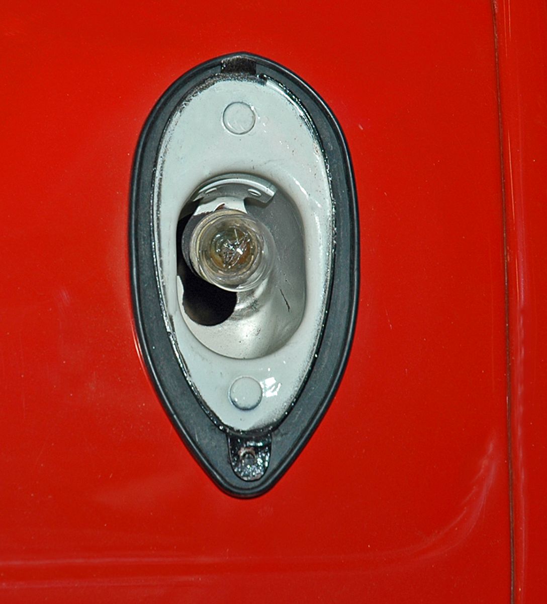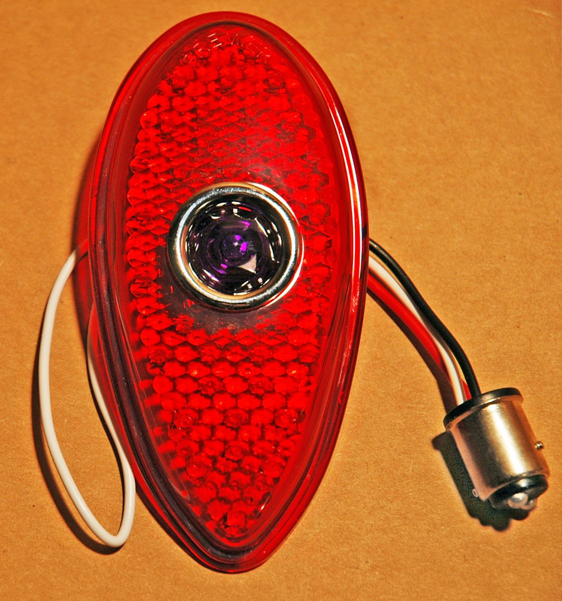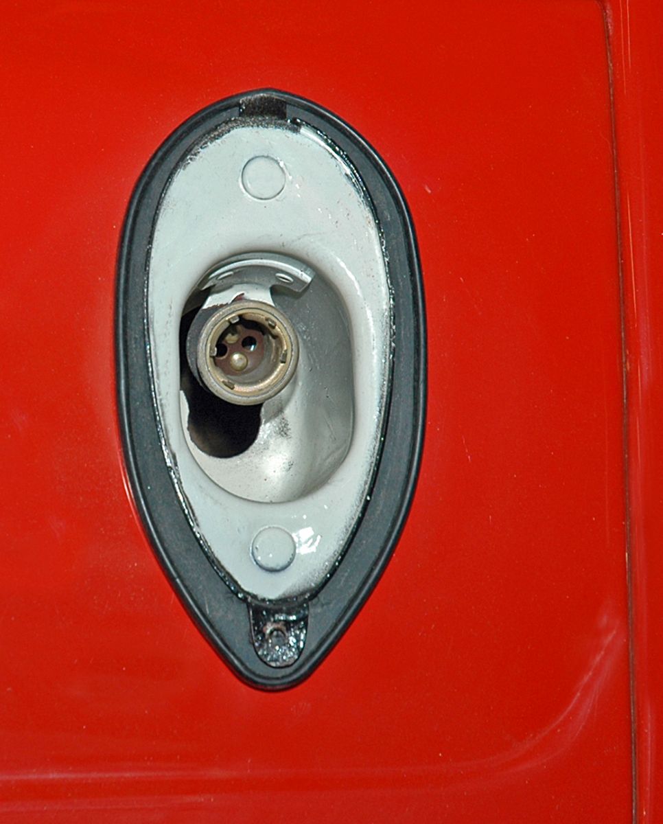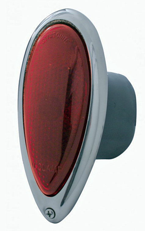 ![]() | This is the original ’38-’39 Ford taillight with the stock glass lens installed in the lower rear panel of my roadster. |