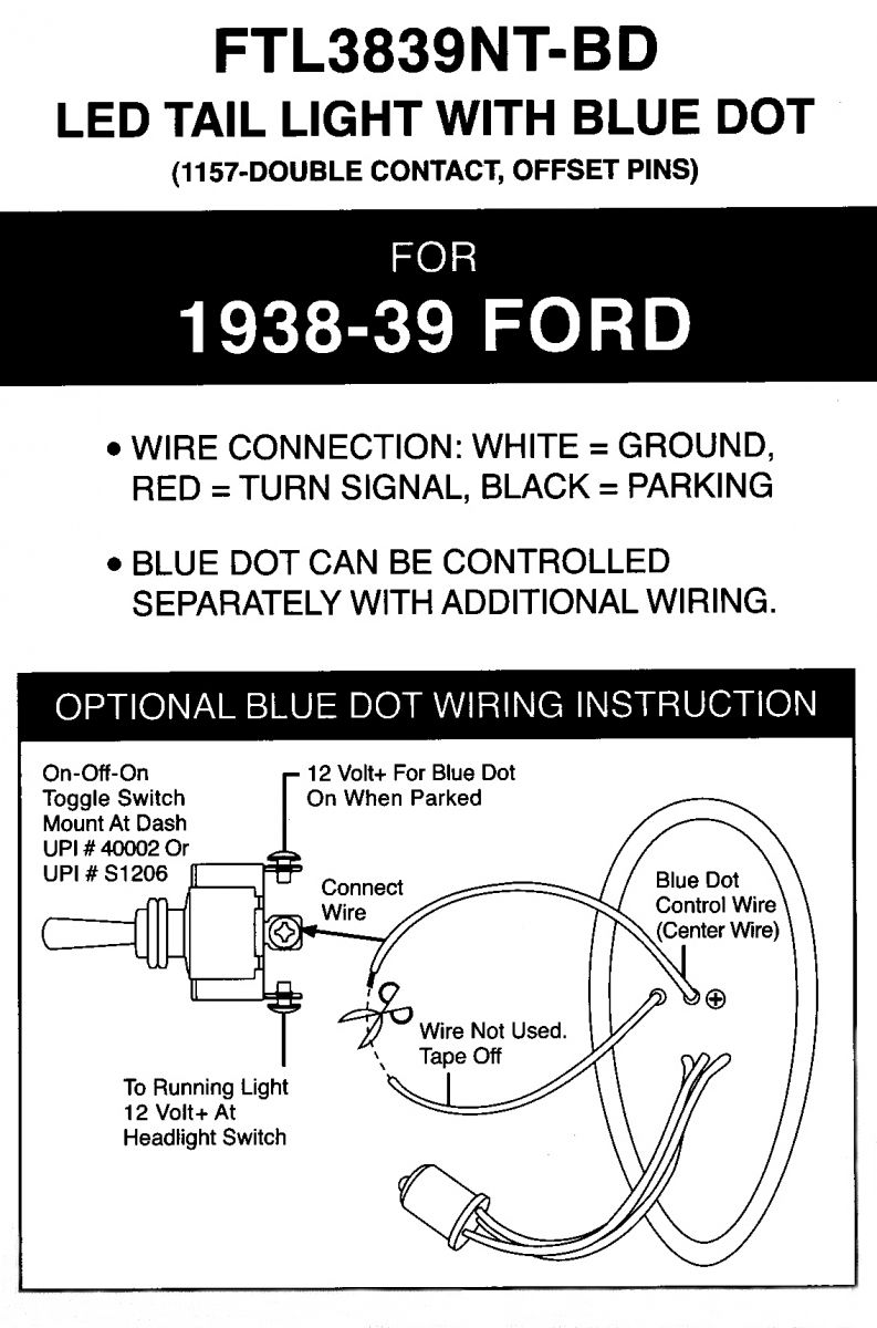 ![]() | 1938-39 Ford LED Taillight w/ LED Blue DotDescriptionNew LED Lens Design is Same SizeShape As Original Ford Lens33 Super Bright LEDs, Complete with Red Polycarbonate Lens with Blue DotFits Left and Right Hand SideDual Function with Taillight & Bright Stop/Turn SignalEpoxy Coated, Fully Sealed ElectronicsEasy Electrical Connection with 1157 Plug, No Modification to Vehicle |