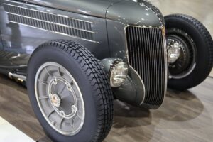 The Al Slonaker Memorial Award, honoring the best non-roadster build, went to Bill Barbato’s golden 1933 Pontiac Sedan, crafted by CAL Auto Creations. This Art Deco-inspired masterpiece outshined a field of 11 finalists, including a dual-engine 1935 International Truck and a 1973 DeTomaso Pantera. Sponsored by ARP Fasteners, the award also came with a $12,500 prize and a custom billet trophy.