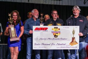 Taking home the coveted America’s Most Beautiful Roadster title was Ross Myers’ 1936 Ford Roadster, built by Rad Rides by Troy. Competing against 10 elite contenders, Myers’ fenderless ‘36 stood out, securing the $12,500 prize sponsored by ARP Fasteners. His name now joins legendary builders like George Barris, Andy Brizio, and Boyd Coddington on the 9.5-foot-tall AMBR perpetual trophy.
