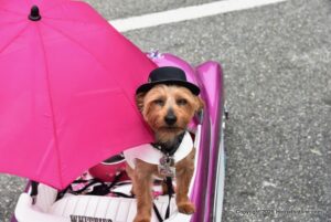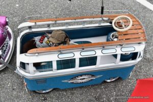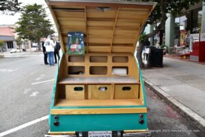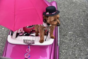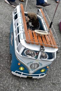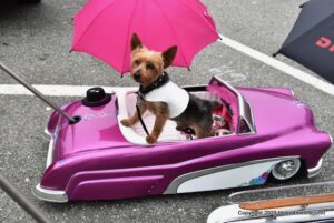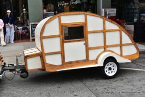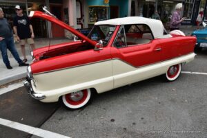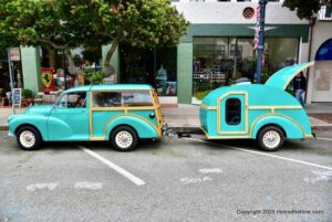 A parade of vintage mini , micro and arcane vehicles down Pacific Groves main thoroughfare beautiful lighthouse avenue .
