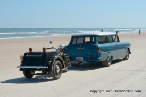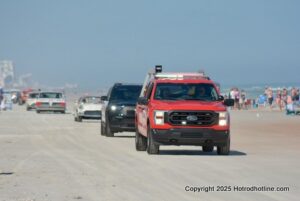 Beach erosion caused by two hurricanes interrupted this event for a couple of years, but now there is enough hard-packed beach sand at low tide to allow the annual parade to resume at Daytona Beach Shores, Florida.