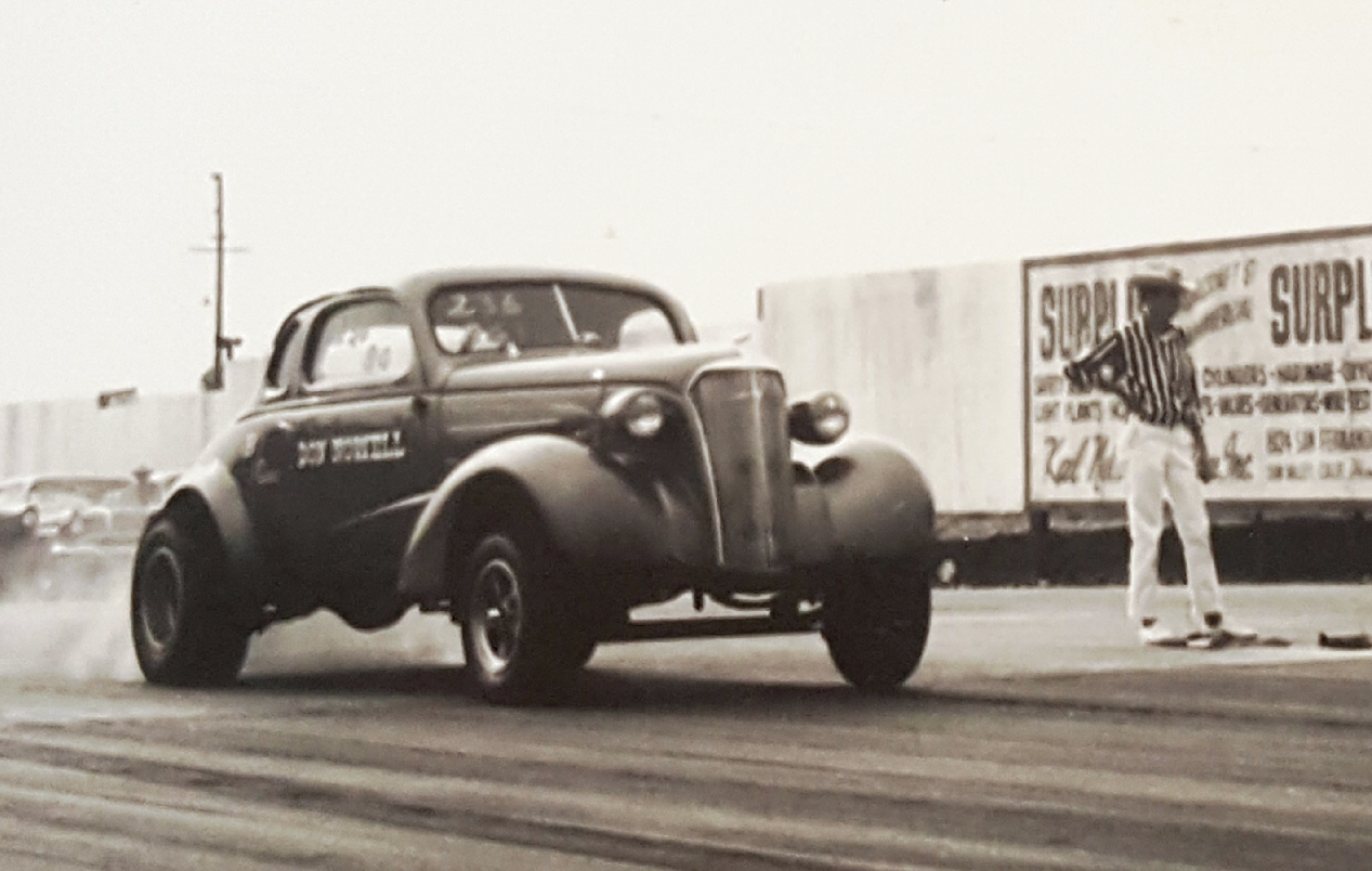 Back in its heyday, the dragstrip drew legions of both amateur and professional racers from the SoCal area as well as from across the country for both its weekly “run what you brungs” and its frequent regional and nationally recognized events. One young hotshoe attending the events during the ‘60s was Don Nowell, who campaigned his 1937 Chevy “gasser,” the daily driver street car he modified for the dragstrip.