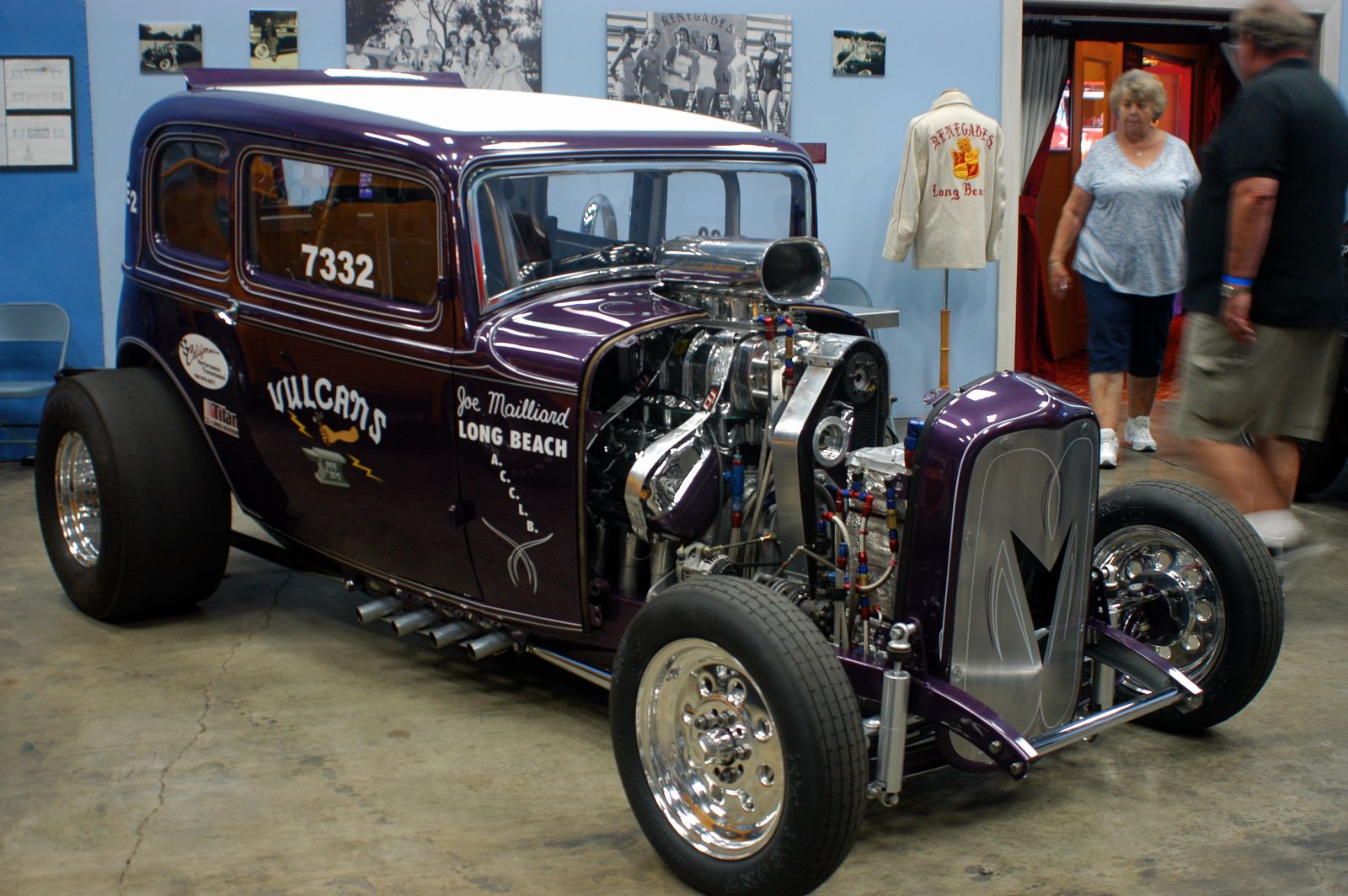 The ’41 Willys A/Gas Supercharged dragster was once voted the fan’s Favorite Race Car after a poll was taken in 2008. Original team members consisted of pilot Doug “Cookie” Cook, Leonard and Tim Woods and Fred Stone. The team soared to stellar heights during 1961-67, and the car earned a major position in the history of dragracing. Seen on the wall behind the Gasser is a painting of the Lions Drag Strip action by motorsport master artist Kenny Youngblood, which will be produced as a life-sized wall mural for the main exhibition room now in the works.
