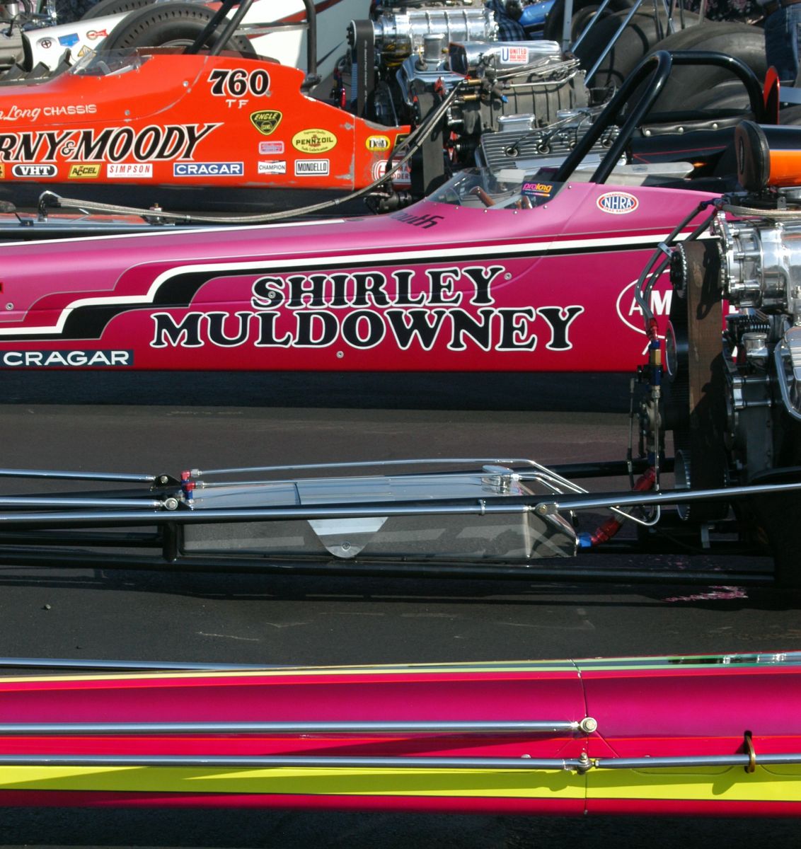 Among the many famous “rails” taking part in the event was one raced by Shirley “Cha Cha” Muldowney, a leading figure in motorsports for more than 40 years. In 1965, she became the first woman to be licensed by the NHRA to race Top Gas, and then in 1971 she moved on to racing Funny Cars, winning her very first race in that class.