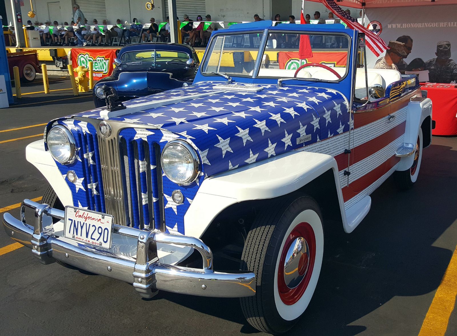 Look closely and you can read the names of U.S. service personnel incorporated in the paint scheme of this Jeepster displayed at the event, in this case by the Honoring Our Fallen organization, which provides lifetime family support to the nation’s fallen military and first responders.