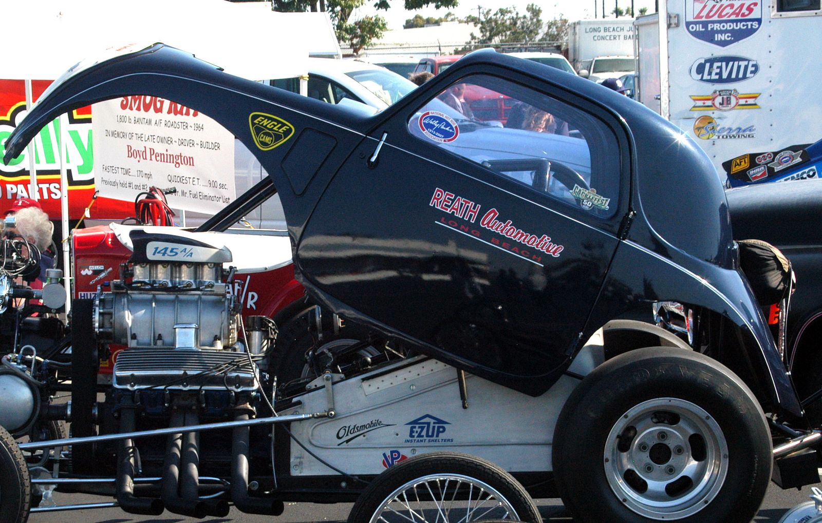 Joe Reath opened his dream vision of a Speed Shop located in Long Beach in 1965, soon becoming a flame to the moths of racers as he stocked the best components and offered a top flight machine shop; plus his parking lot, right off the freeway, made a perfect gathering spot for car meetings. They came from all over the U.S. as well as Australia, England, Sweden and elsewhere. Some 30 years later, the shop made the move to Signal Hill, the doors staying open until 2006. Joe was honored for his many achievements and contribution to the sport at the First Lions Drag Strip Reunion in 1998.