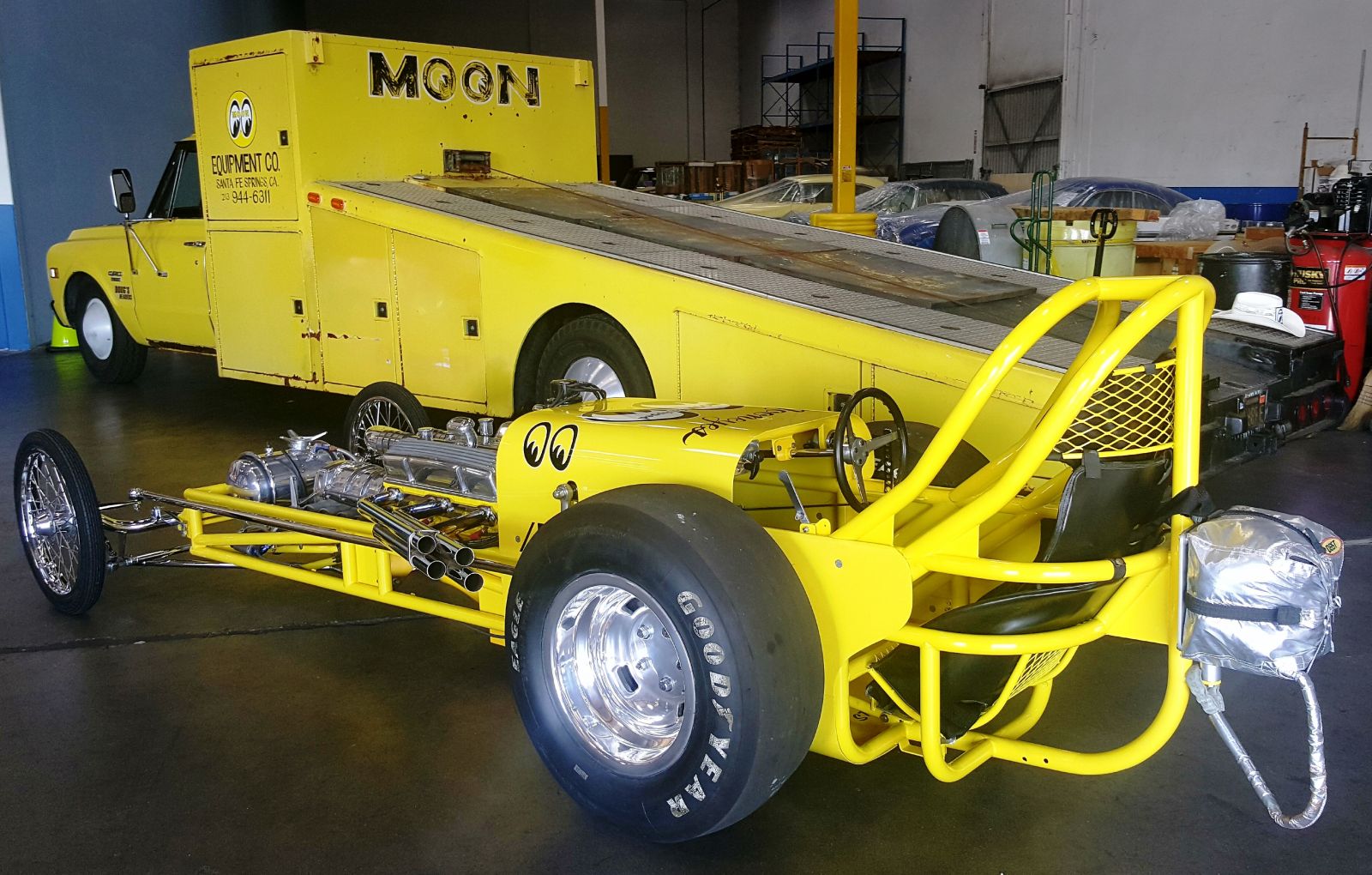 You could say all eyes are drawn to the Dean Moons A/D dragster and its bodacious hauler. The circa 1961 racer runs a Chevy mill with trick crank-driven supercharger, while its hauler is based on an early ‘70s Chevy ramp truck. The racer has even traveled to England because of its popularity, won Middle Eliminator at the Winter Nationals and took its class win at Indy. The original car was retired first to Don Garlits Museum of Drag Racing in Florida, and then a replica was built for the NHRA museum.
