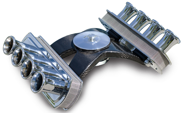 Introducing the Carbon Spider and Carbon Spider Fuelie, our two newest billet aluminum air cleaners in the March Performance air cleaner family. Machined from billet 6061-T6 aluminum, featuring handcrafted aluminum meshing, carbon fiber air cleaner supports and a Lifetime S&B Re-usable filter. Both are custom designed upon order to meet your build needs, they are available in a wide variety of finishes: clear powder coat, chrome, black, & black onyx.