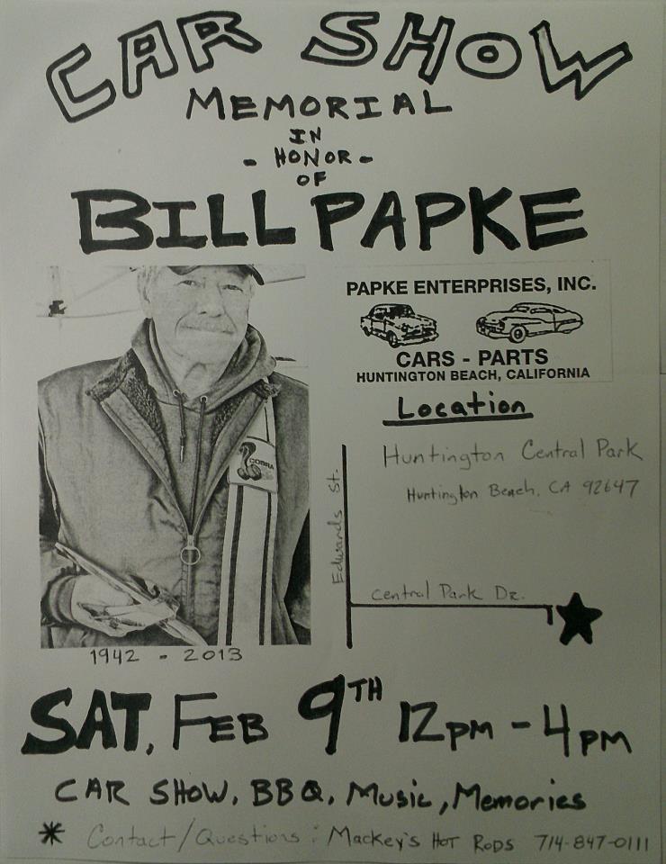 Long time West Coast Kustoms Orange County Rep BILL PAPKE of Papke Enterprises passed away in the early am of 1/22/2013 of cancer. He was surrounded in his final moments by his family!