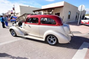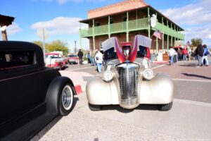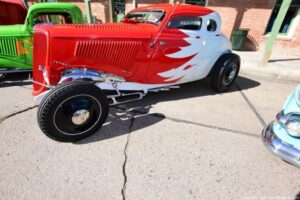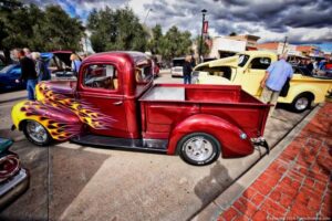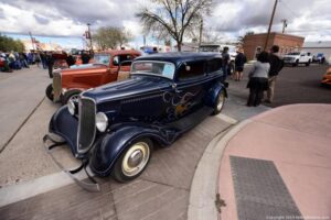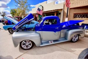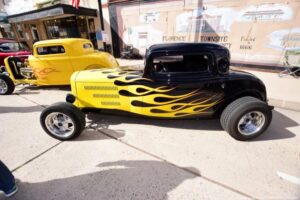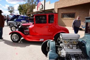 Second annual classics and customs, bikes and hot rods show in historic Florence AZ. It’s a small town and very rustic; a very cool town for a car show. They filled all of Main St. and the hot rods were top notch – look at my photos and see for yourself. With a raffle, music, food and awards, it was very well run, and made a very relaxing and laid back car show.