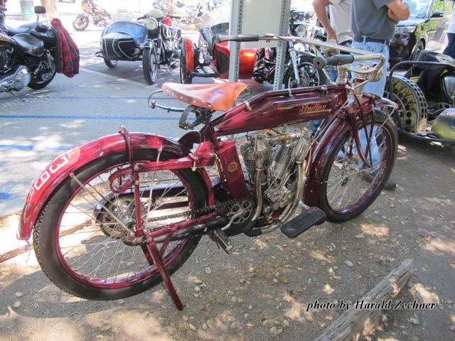 Next to the Side-hack was a immaculate 1915 Indian Power-Plus twin. Fully restored from the ground up it’s owner Neil Nissing told the story of how Parti took to collecting and restoring old bikes full time after breaking both arms in a crash in 1975.