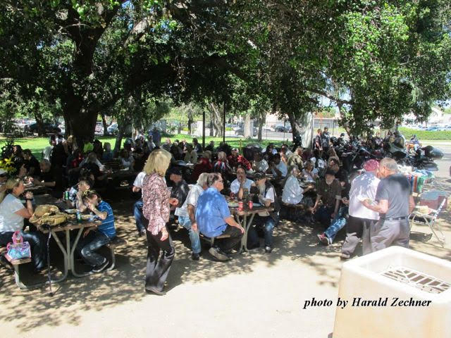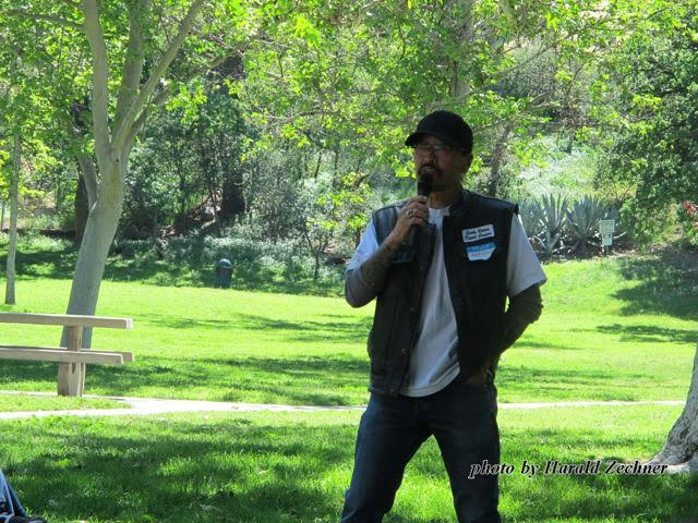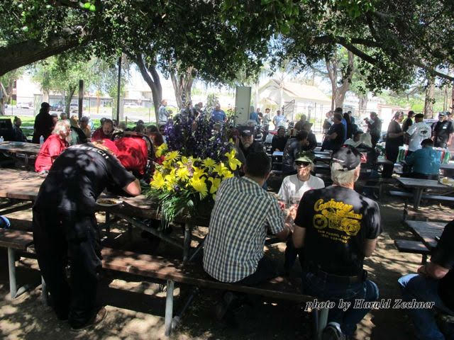 Pulling into the large 160 acre County of Los Angels facility there was no wondering on where the memorial was being held. Hot Rods, antique motorcycles and cars showed the way. The lot full, street parking outside the park was plentiful and close.