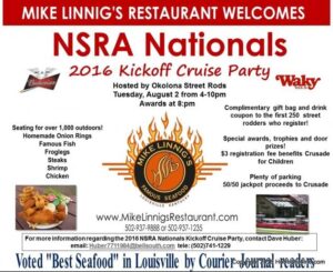 While traveling on a road trip I made it over to the NSRA NATIONALS KICK OFF CRUISE PARTY at Mike Linning’s Seafood Restaurant in Louisville, KY.