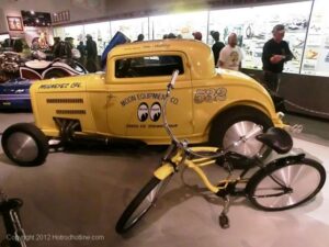 “The Museum is delighted to be hosting this exhibit in honor of hot rod pioneer Dean Moon and Mooneyes carried by its current custodians Shige and Chico,” said Museum Director Tony Thacker. “Since I was a kid growing up in England, I was instantly drawn to Mooneyes for their innovations and of course, those funky leering eyes and I’m sure there will be more fans drawn in to this exhibit by this eye-con.”