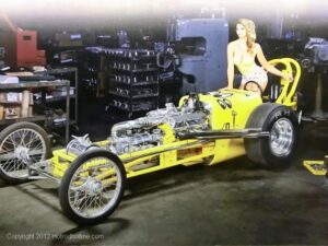 Dean Moon’s introduction to hot rodding came at a young age and flourished when the family moved to Southern California. Dean started working on the oil rigs surrounding Pop Moon’s Café in Norwalk, Calif. Dean, older brother Buzz and members of the “Hutters” car club built numerous primitive hot rods behind Pop Moon’s Café. His first successful car, a chopped Deuce sedan raced at the lakes and Santa Ana drags, it set a Rusetta Timing Association record at 141 mph in 1950 and was featured on the cover of the Dec. ’51 issue of Hop Up magazine.