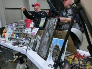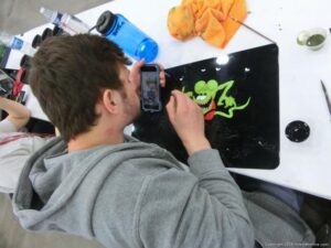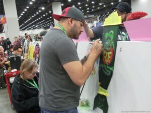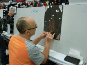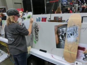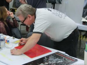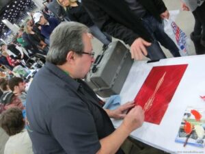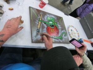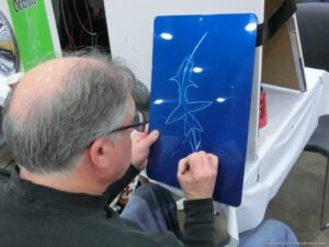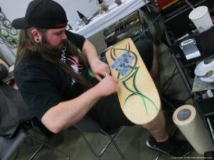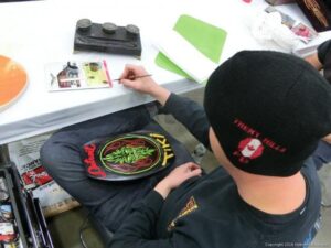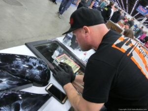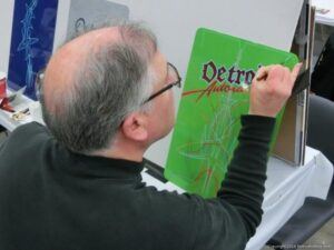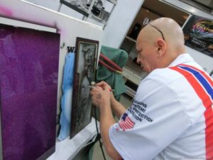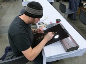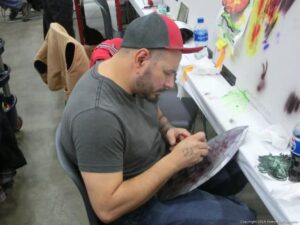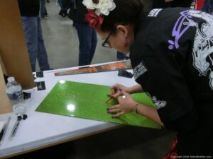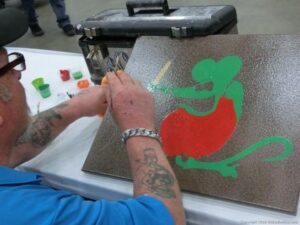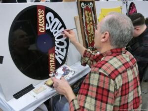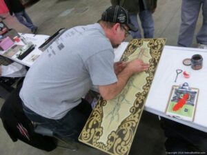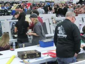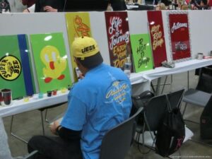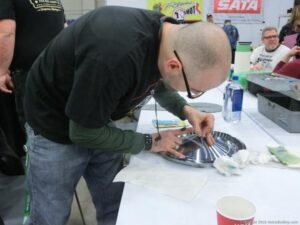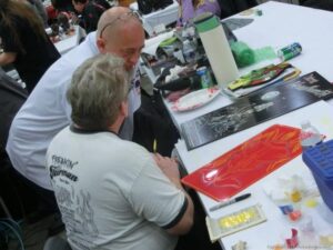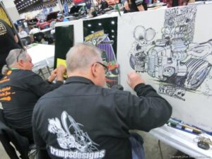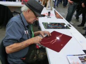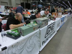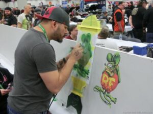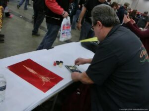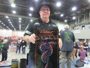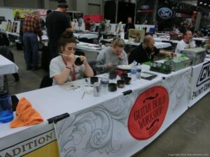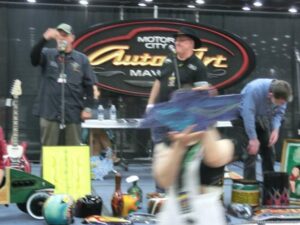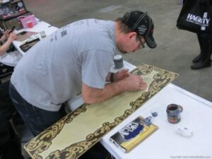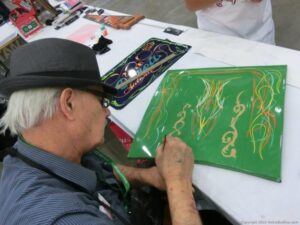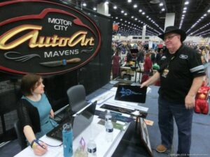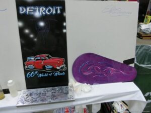 Check out the Saturday pics from MOTOR CITY AUTO ARTS MAVENS PINSTRIPER’S, SIGN PAINTERS and AIRBUSH ARTISTS PANEL JAM from DETROIT AUTORAMA. The year’s event had THE OLD & YOUNG PINHEADS …showing there talent. All the proceeds from the Panel Jam Auction is going to Leader Dogs for the Blind http://www.leaderdog.org/ I was told they raised over $41,000