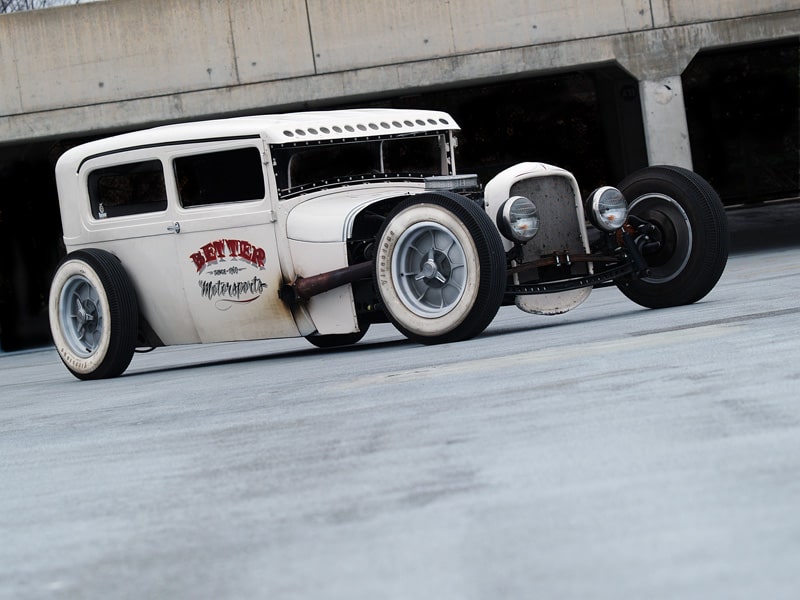 Though a variety of engines are potentially used, the most common muscle in rat rods are flathead V8 engines, early Chrysler Hemi engines or more modern small block V8 engines. Straight-8s, straight-6s and straight-4 are also favourites. Sean’s machine houses a Ford 302 V8 with a Ford 4-speed and 8” rear end.