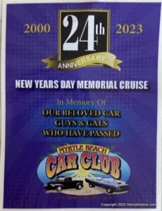 This event is the original New Years Day Memorial Cruise. Started by the Winyah Cruisers and now with the help of HOT ROD Promotions and Myrtle Beach Car Club gets larger each year.