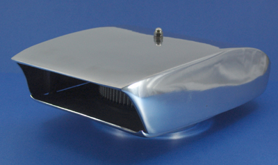 This rectangular opening air scoop is a recreation of a traditional scoop with a cotton gauze lifetime washable element added it fully able to keep you engine’s air supply clean. It is made to fit all modern single 4BBL applications with a 5 1/8″ carb neck. It comes fully polished from top to bottom with a 6 3/8″ x 2 1/2″ element, 1/4-20 stud, stainless steel washer and SS acorn nut. Measures 13 1/2″ L x 8 1/4″ W x 4 1/2″ T.