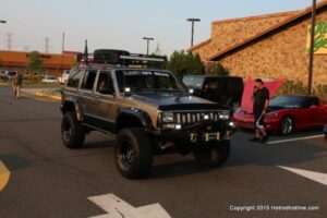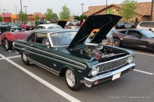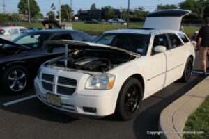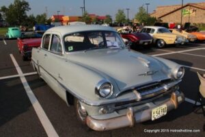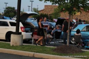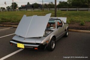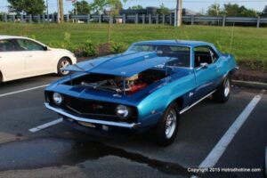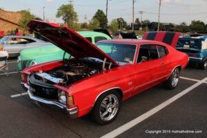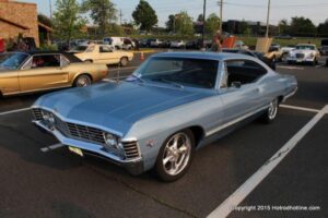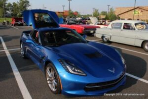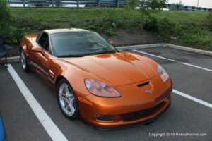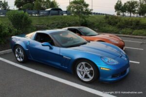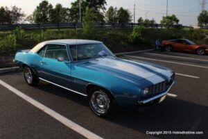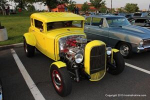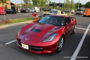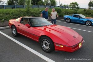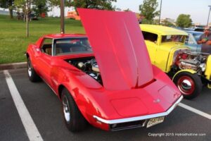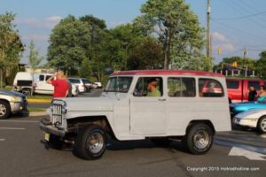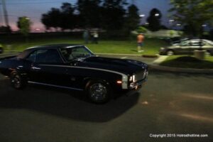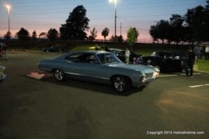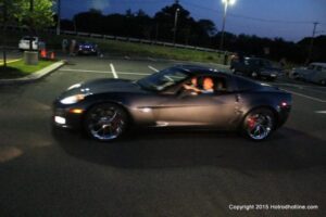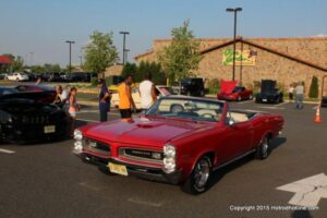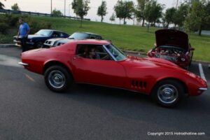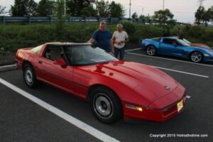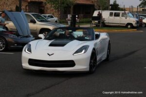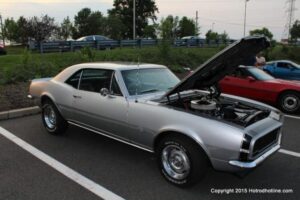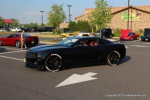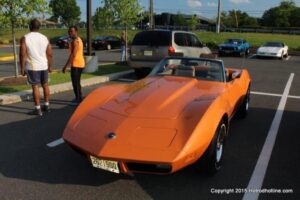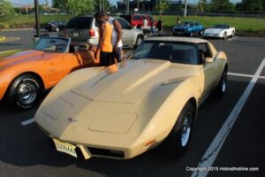The first of seven Olive Garden Cruise Nights took place this evening, with a varied selection of vehicles to look at and enjoy. The oldest vehicle was a 1920’s era Model A, with a number Corvette model years represented at the event, as well Camaros, ranging from the 1960’s, to the 2000’s. There was a Polaris Slingshot present, some of the newer Dodge Chargers, and a few imports, including a Fiat Bertone. Chuck Leonard entertained the crowd with his wry humor, eclectic music collection, and rather interesting dance routine at one point in time, caught on video by yours truly. The event schedule for 2015 is for the Olive Garden Woodbridge NJ Cruise Night to take place on the second and fourth Tuesday of each month, until September. Carside food delivery is available to the vehicle owners, so one doesn’t have to miss any of the festivities, while waiting for, or eating their Dinner.