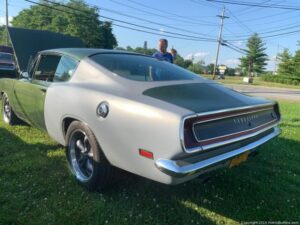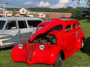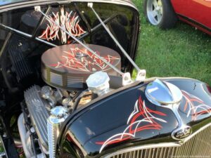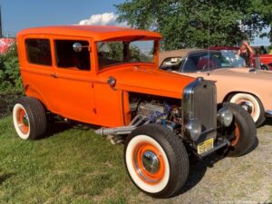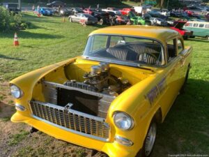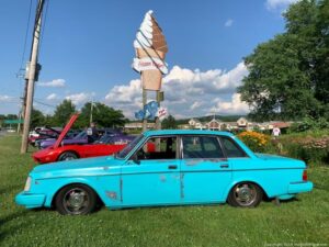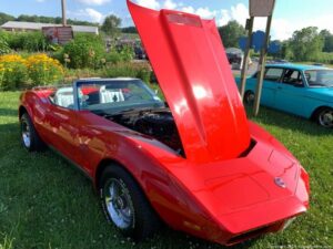 A packed hot night at Pennings Wed Nite Cruise-In with a full field of mustangs, Model A’s, ‘Vettes and even a Kool Econo Van..
