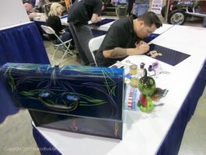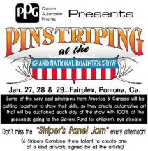 Check out the pics from STRIPER’S PANEL JAM from the GRAND NATIONAL ROADSTER SHOW This year’s event had THE OLD & YOUNG PINHEADS …showing their talent. All the proceeds from the Panel Jam Auction is going to the Gavin R. Stevens Foundation.