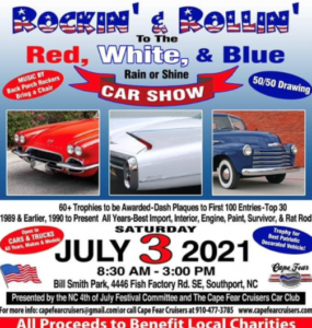 Great ride to with a bunch of car friends on the road by 6am to the Cape Fear Cruisers Car Club.. ROCKIN’& ROLLIN’ to the RED, WHITE, & BLUE CAR SHOW in Southport,NC.