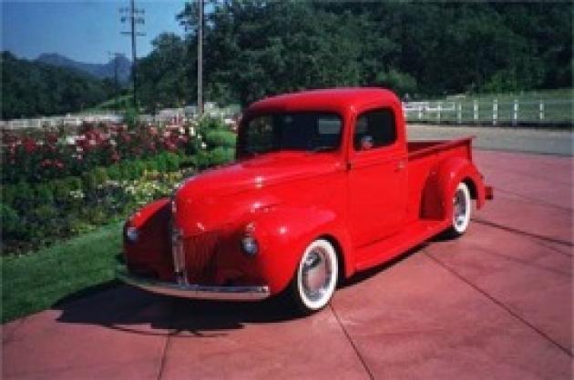 Ron Lingo’s ’40 Ford Pick-up. This is Ron’s beautiful Pickup ALL STEEL,  350 Chevy, 400 Turbo, Mustang 11, Lincoln Versailles 9″ Ford, Vintage air / heat, 4-wheel power disc brakes, Walker, VDO, Holley Contender intake with Crossfire ignition, Chrome 1950 Mercury Hubcaps with B.F. Goodrich Radials WW, etc. This is a So. California truck, driven… Continue reading Ron Lingo's '40 Ford Pick-up
