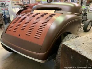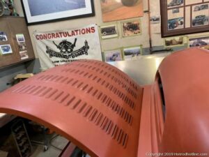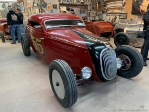 The cars they build always have the tops chopped hard with the windshield leaned way back. Original Ford bodies are perched up onto original Ford Chassis’s. No reproduction parts here at all. These cars are the real thing built from parts that guys used from the mid to late forties and earlier. The Rolling Bones guys have gained a measure of fame by driving their rods across the country to places like Bonneville and the SEMA show and I even saw them last weekend at the GNRS.